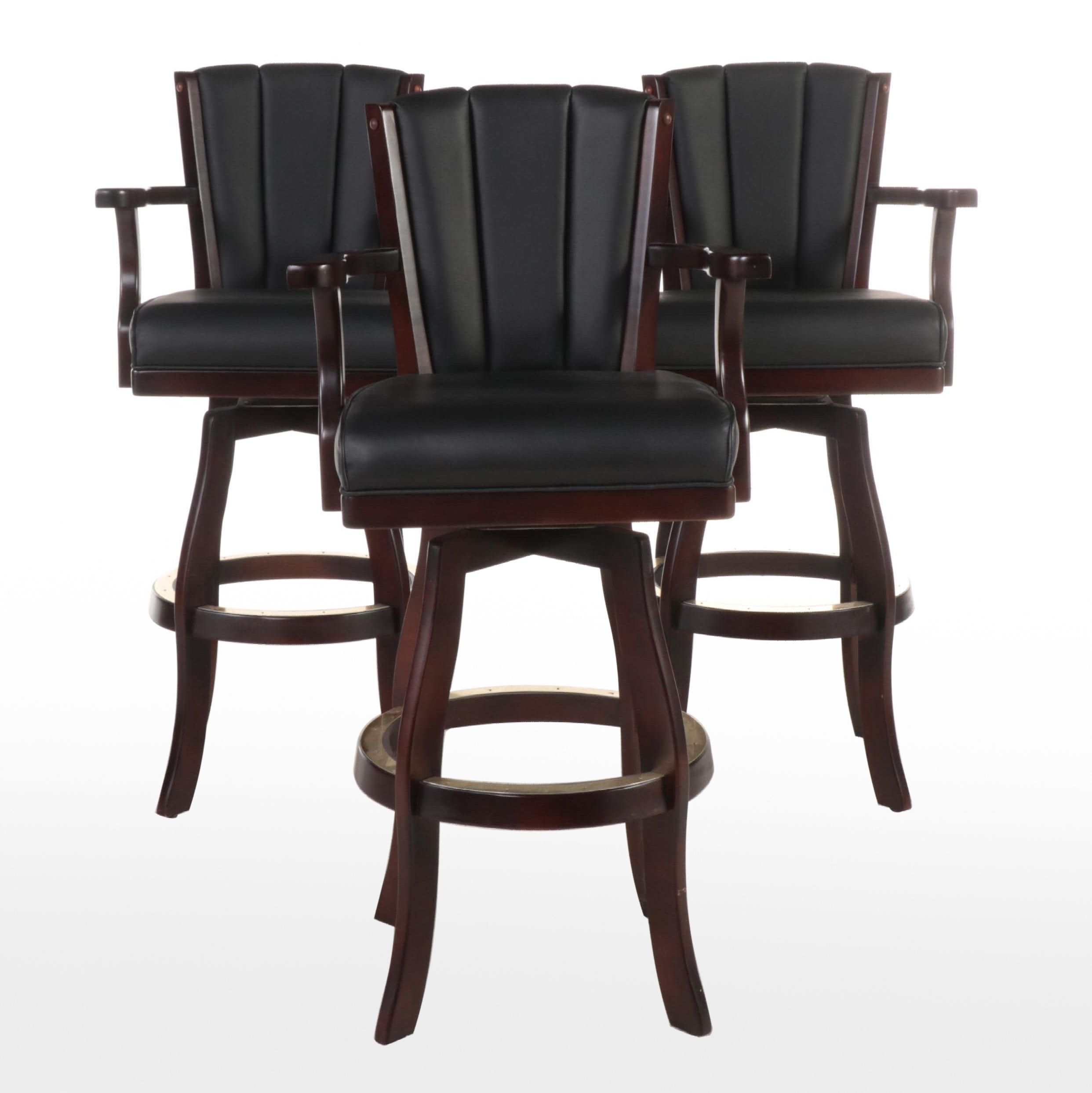Three Beach Mfg. MahoganyStained and FauxLeather Swivel Bar Stools EBTH Beach Mfg Bar Stools Bring the calming vibes of the coast to your own home by adding a set of beach bar stools to the mix. Bid on pair of beach mfg. Check out our beachy bar stools selection for the very best in unique or custom, handmade pieces from our stools & banquettes shops. Bar stools are the ultimate versatile seating option, whether. Beach Mfg Bar Stools.