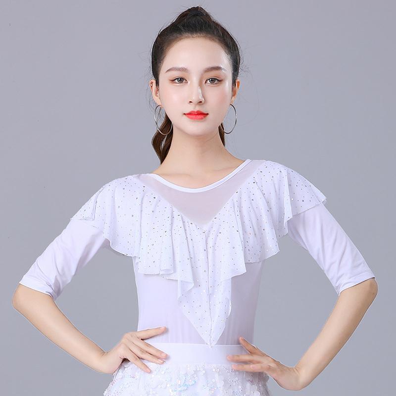 Tシャツ レディース ラテンダンス ウェア 半袖 フリル 踊り 社交ダンス 部活 学園祭 モダンダンス 発表会 練習着 舞台衣装 ライブ