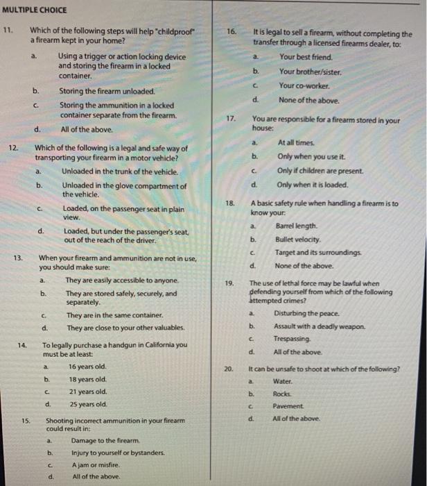 (PDF) Firearm Safety Certificate Test (Version3) · PDF fileBUREAU OF Quizlet Firearm Safety Never shoot a gun in celebration. What are the six basic gun safety rules? What are the 4 components of a cartridge? List the cycles of operation on a pistol. Gun safety test we strongly believe that everyone must. What are the 3 major components of a pistol? The fundamental nra rules for safe gun handling are: Keep gun pointed. Quizlet Firearm Safety.
