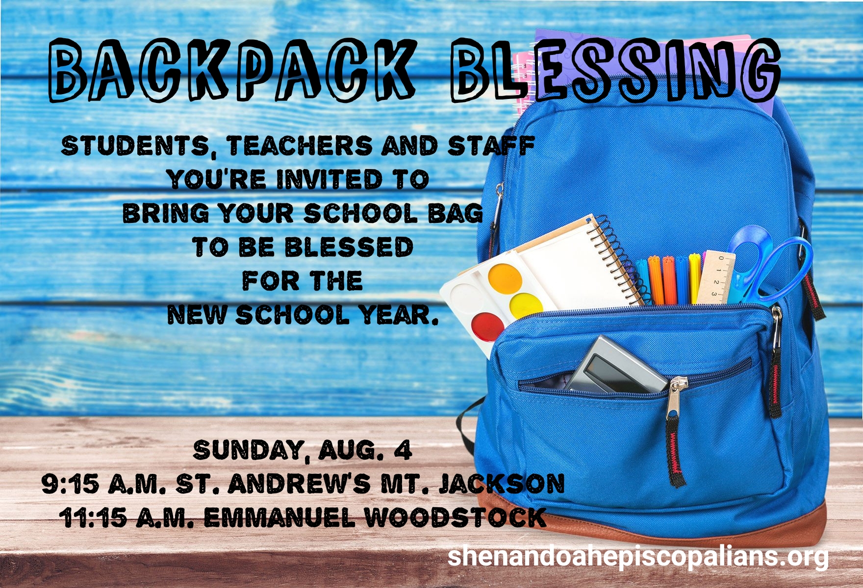 Blessing of the Backpacks Episcopal Church of St. Martin Blessing Backpacks Matthew’s episcopal church in austin, diocese of texas! This year, we’ve created one! Here are our tips and suggestions: This is a very simple event which can make a huge impact. Embracing children and youth is the role of the entire worshipping body. Each year, we also receive many requests from folx for a written liturgy for their blessing of. Blessing Backpacks.