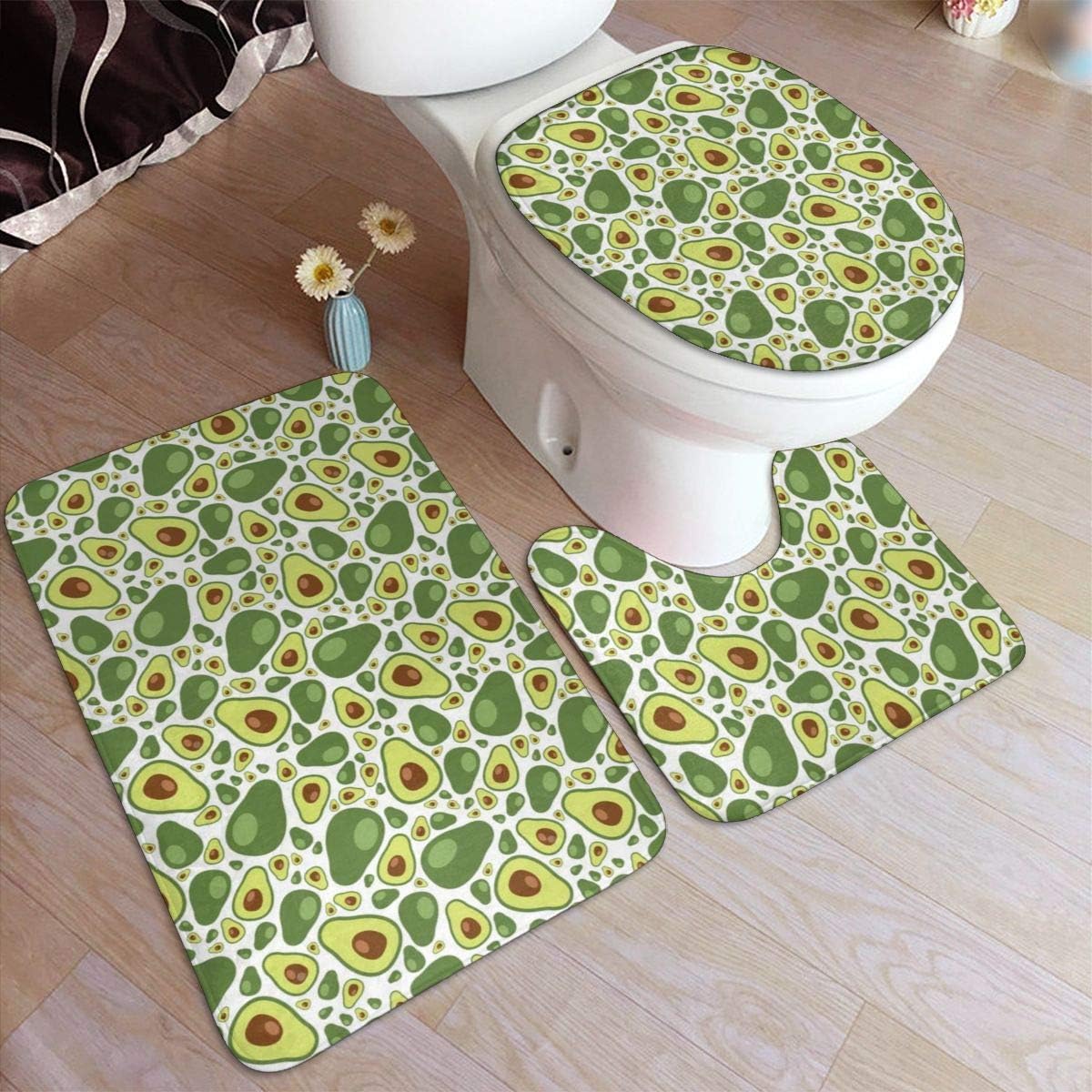 Avocado Anti Slip Bath Mat Set Includes Contour Rugs Lid Cover Bath Mat 3 Piece