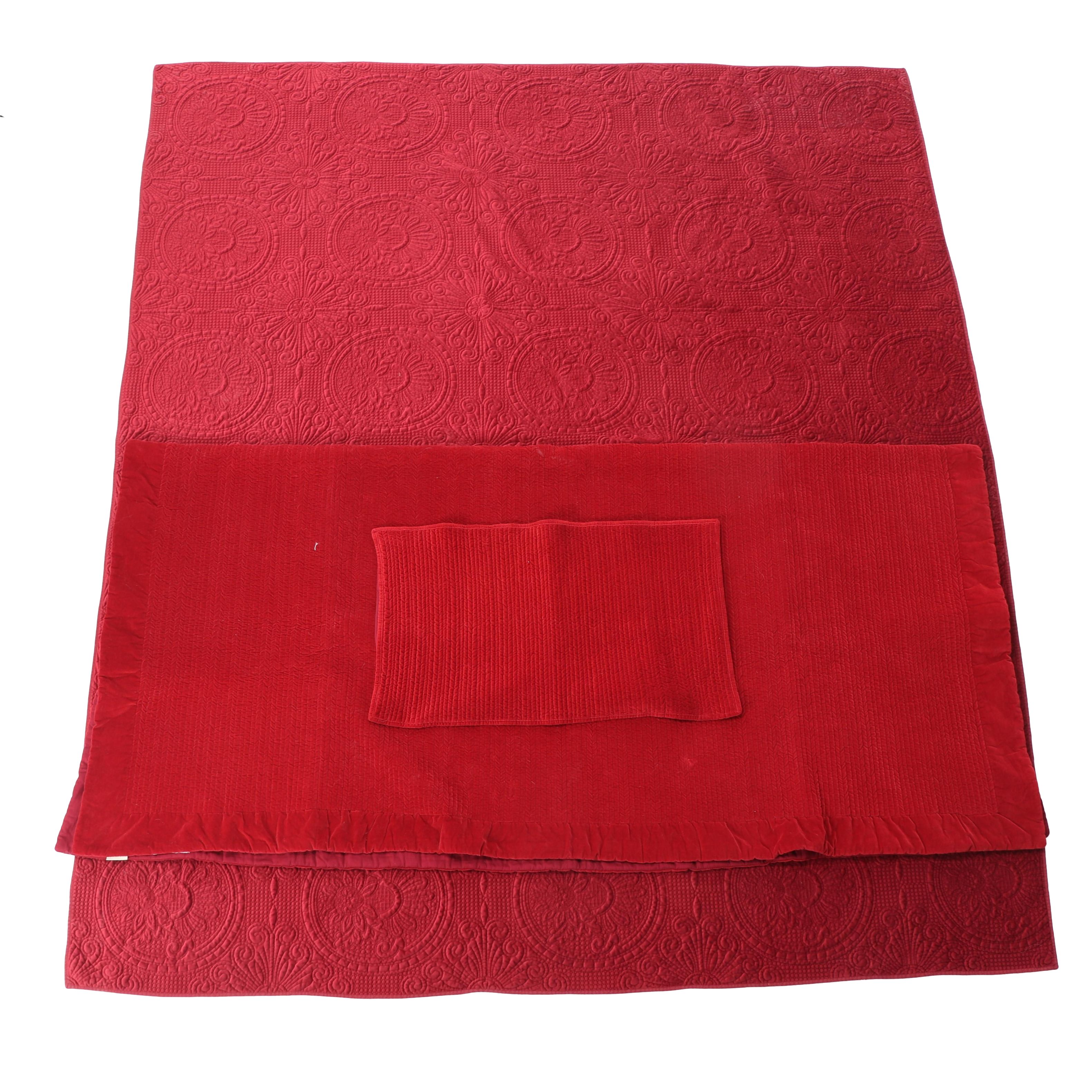 Pottery Barn Washed Red King Size Matelasse Coverlet, Velvet Quilt and Sham EBTH