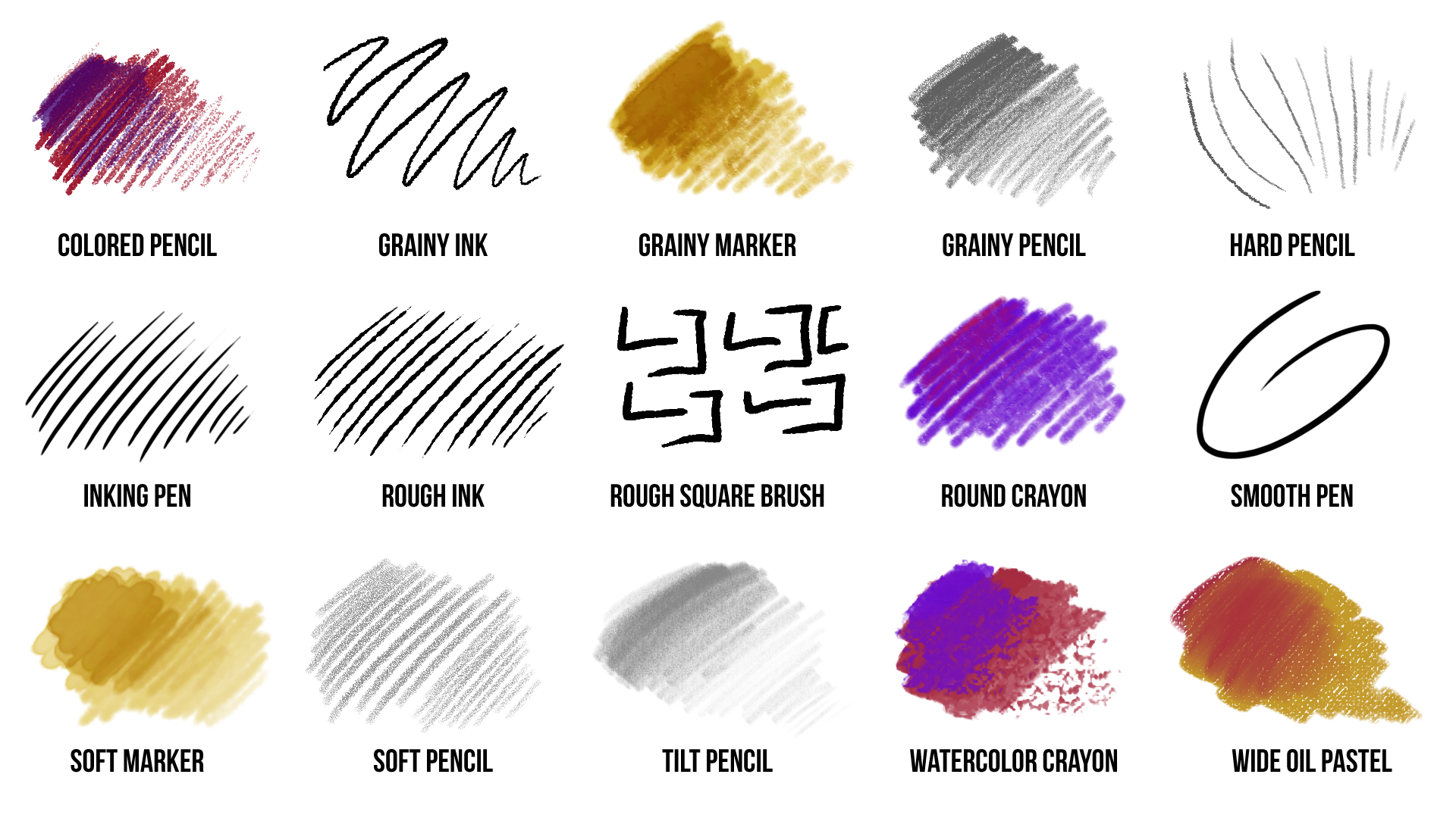 Pencils, Pens & Crayons Brush Pack for & Adobe Fresco (15