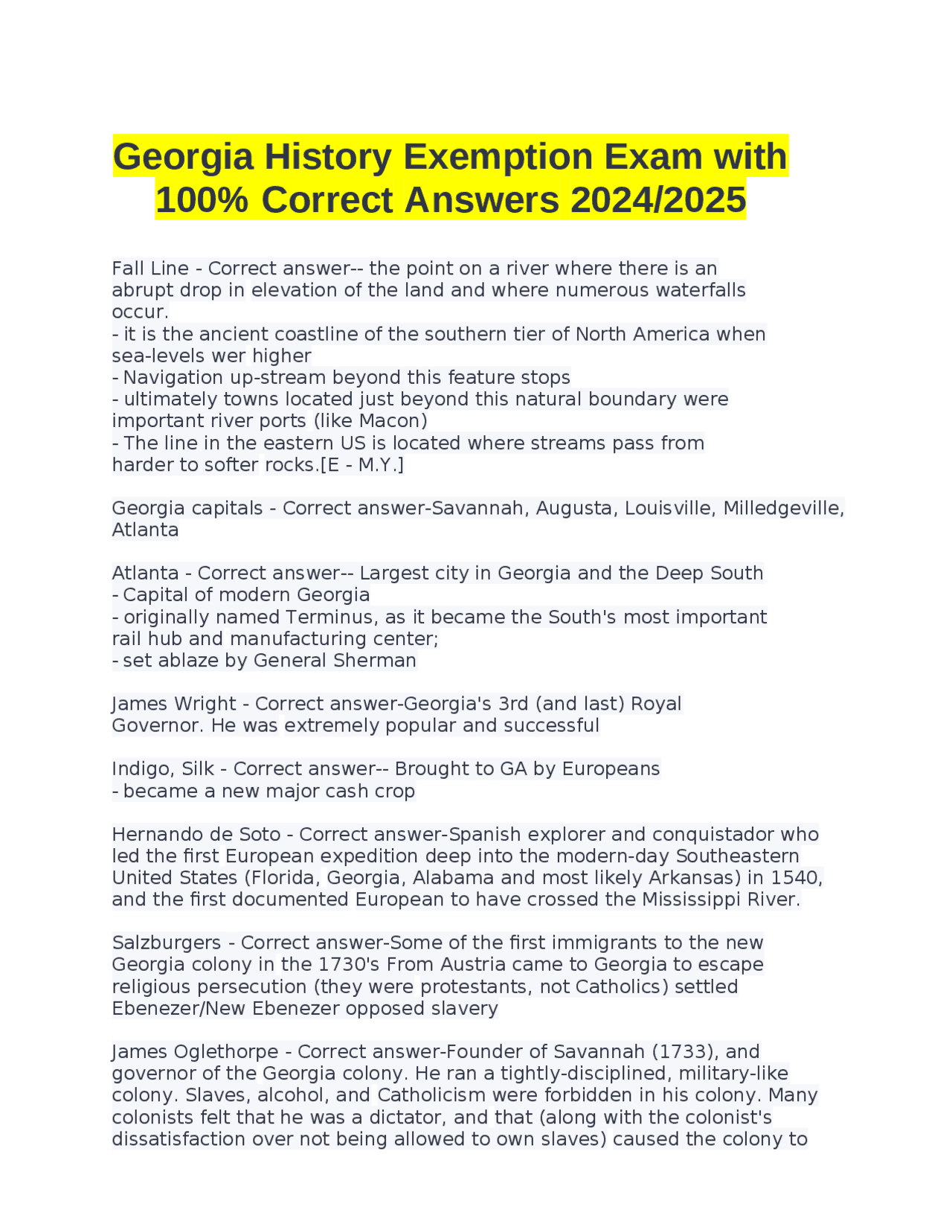 History Exemption Exam QUESTIONS WITH COMPLETE SOLUTIONS_ (1 Georgia History Exemption Exam Questions From what i've heard, they've updated the test so i was wondering if anybody had any advice about how to prepare for it that has taken it lately, as. The georgia exemption exams are given daily by appointment at no cost and may be taken as many times as is needed to obtain a passing score. Frank marshall) held that. Georgia History Exemption Exam Questions.