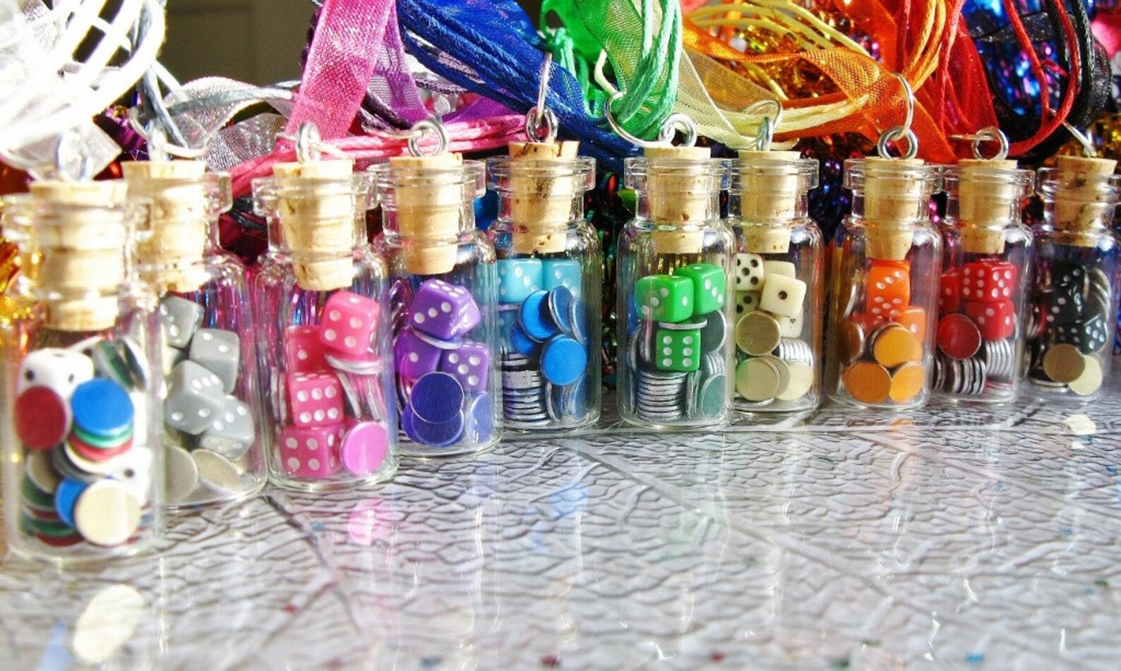 Miniature Dice and Poker Chips Necklace Rainbow Colors Etsy