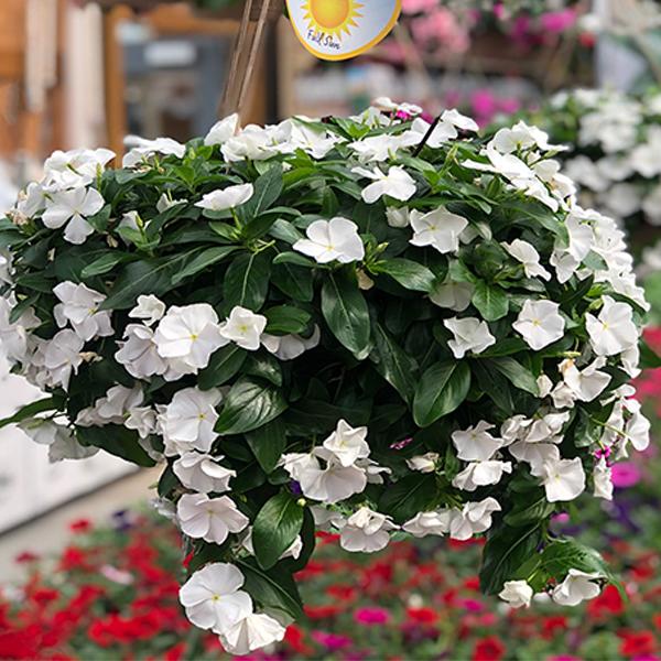 Vinca 10 inch Hanging Baskets Fogler's Greenhouse Rochester, MI Vinca Flower Baskets a favorite choice for southern gardens, annual vinca flowers are sun loving and heat tolerant. once you have your vinca, you’ll need some soil and a spot to plant it. plant vinca along the edges of flower beds or use it as a border plant to create a defined and cohesive look. With a height of only. Vinca Flower Baskets.