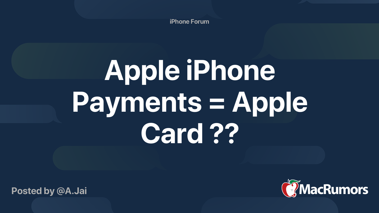 Apple iPhone Payments = Apple Card ?? MacRumors Forums