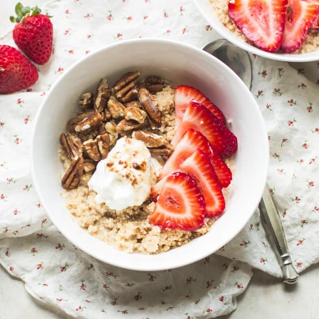 Couscous Breakfast Bowl with Dates and Almonds Cooking Mediterranean Strawberry Couscous Breakfast Bowl This easy and healthy breakfast couscous is a great alternative to oatmeal. Never lose a recipe again, not even if the original website goes away! Use the copy me that button to create your own complete copy of any recipe. It's packed with nutrients and hearty enough to keep you satisfied all morning! Plate and garnish with chives and basil. Strawberry Couscous Breakfast Bowl.