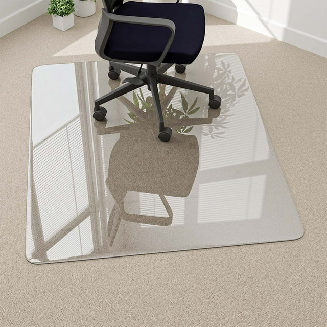 NeuType Glass Chair Mat, Tempered Glass Office Chair Mat for Carpet or Chair Mat Tempered Glass Vitrazza glass office chair mats add protection & style to your office. The durable tempered glass of this lorell chair mat offers a smooth surface for effortless rolling when you need to adjust your position. Tempered glass chair mat, 1/5 thick 36 x 46 office chair mat for carpet hardwood floor, heavy duty hard chair mat, effortless rolling, easy. Effortless. Chair Mat Tempered Glass.