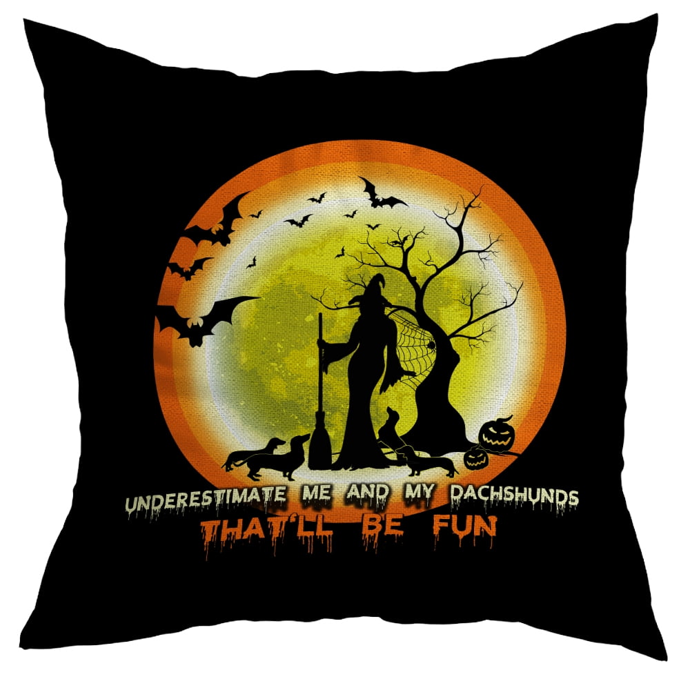 Halloween Pillows, Halloween Decoration Witch Dachshunds Bats Moon