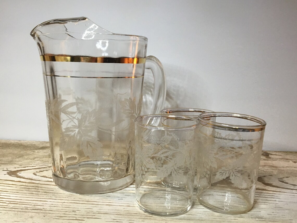 MidCentury Bartlett and Collins Glass Pitcher and 3 Glasses Etsy Collins Glass Pitcher | browse our daily deals. Find many great new & used options and get the best deals for vintage bartlett and collins glass pitcher with etched leaves gold band 1950's at. Their specialty items include enameled drinking. Get the best deal for bartlett collins in other 40s, 50s, & 60s glassware from the largest online selection at ebay.ca. Check out. Collins Glass Pitcher.
