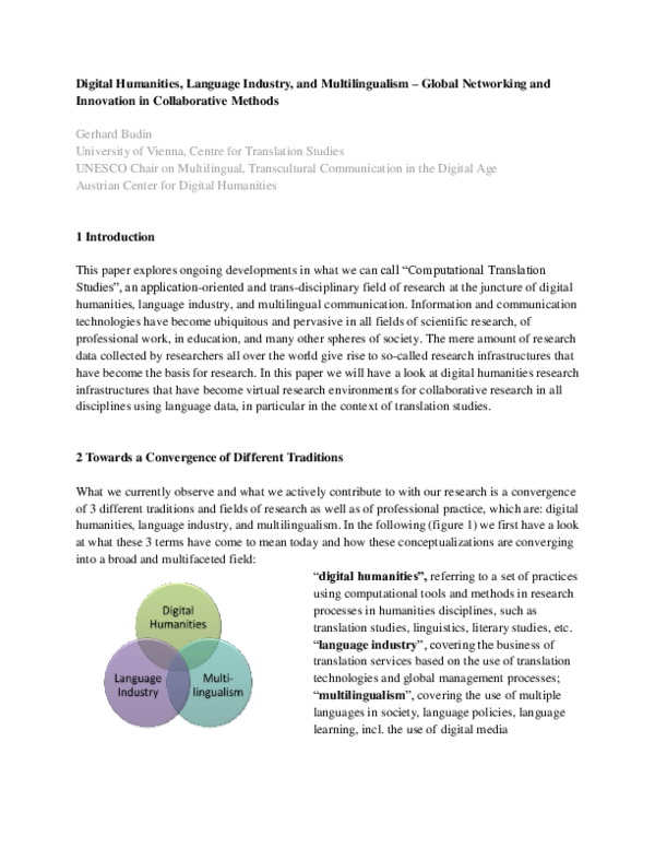(PDF) Digital Humanities, Language Industry, and Multilingualism