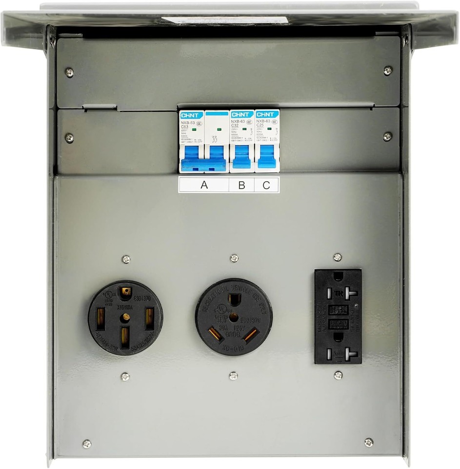 Temporary Power Outlet Panel,RV Electrical Breaker Box w/20/30/50 Amp
