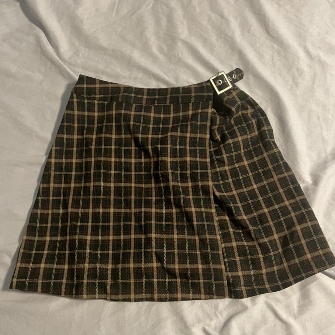 Brandy Melville brown plaid skirt with buckle detail... Depop