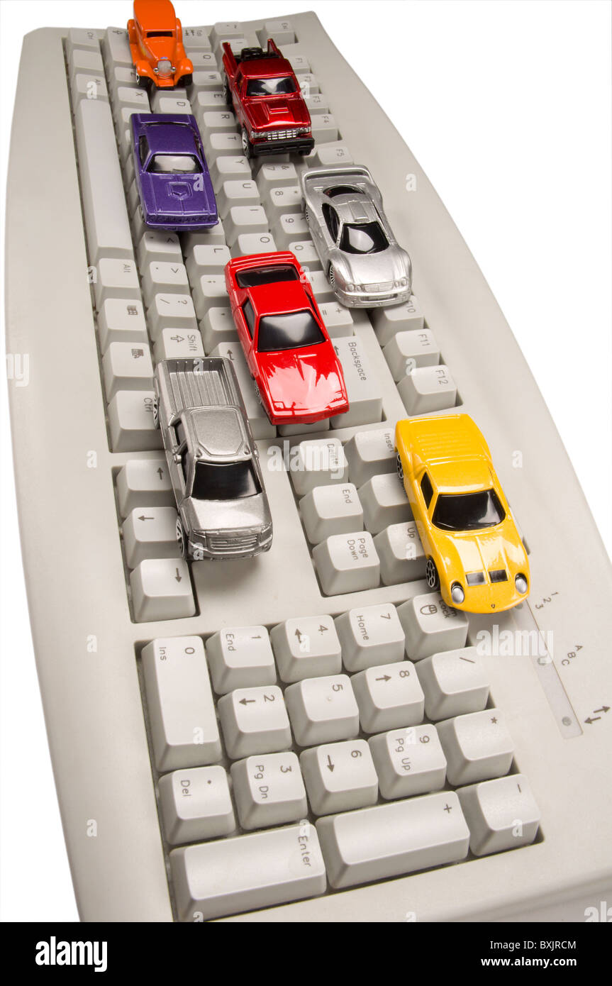 Model cars on a computer keyboard Stock Photo Alamy