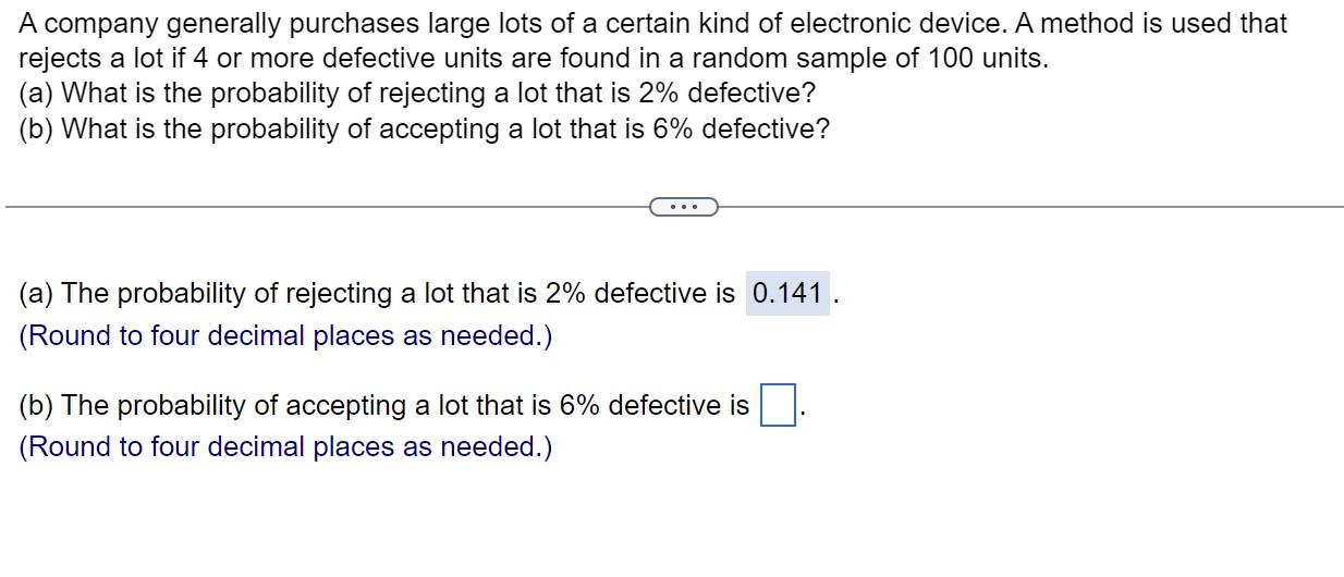 Solved A company generally purchases large lots of a certain