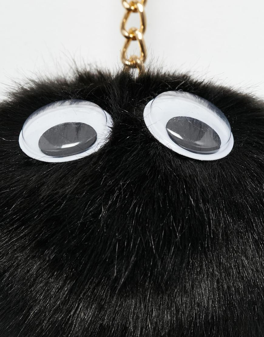 Asos Large Fluff Ball Keychain With Googly Eyes in Black Lyst