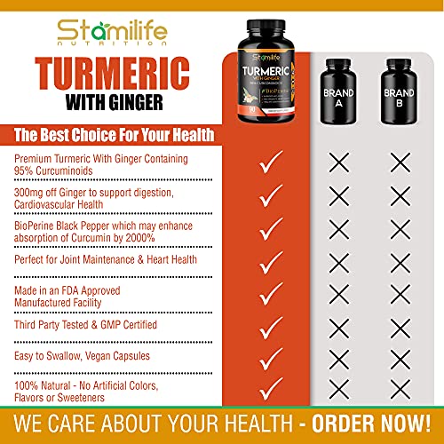 STAMILIFE Turmeric Curcumin with Ginger Supplement 95 Curcuminoid