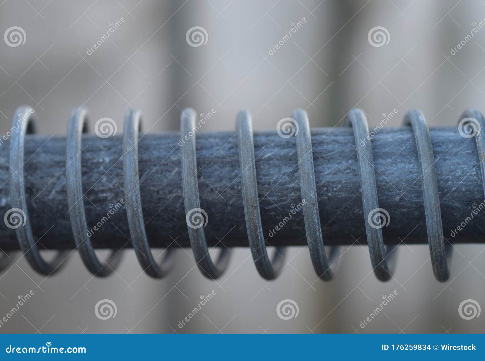 Closeup Shot of Metal Coil Spring on a Gate Post Stock Photo Image of