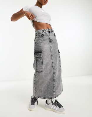 Stradivarius Str Denim Cargo Maxi Skirt In Washed Gray ModeSens