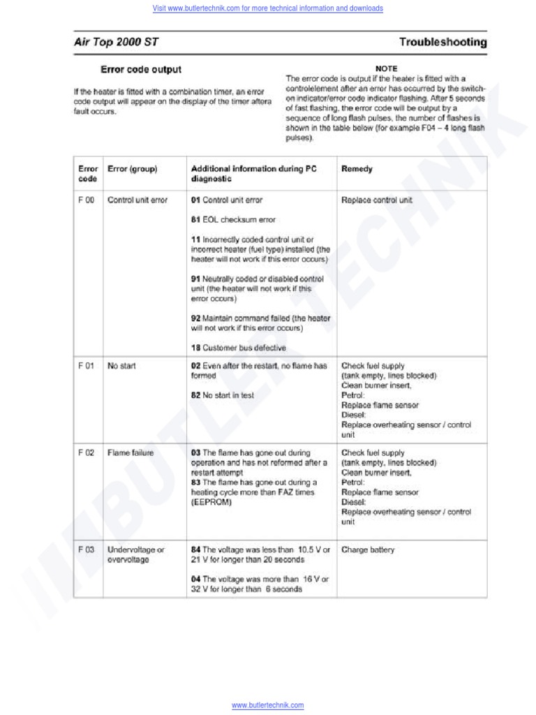 asto Heater Air Top 2000ST Fault Codes PDF