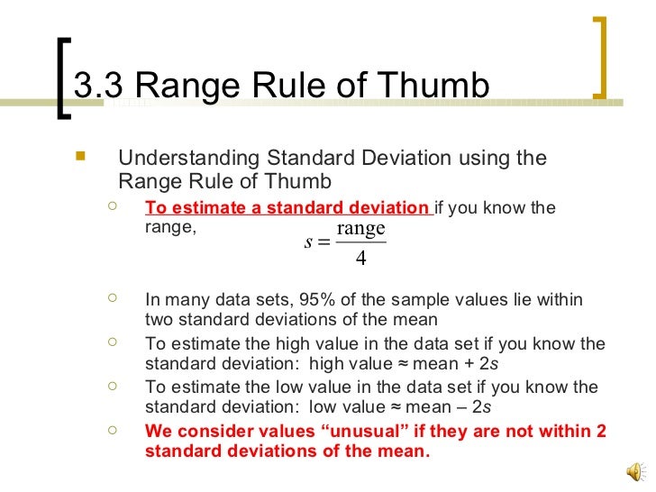 PPT Section 33 PowerPoint Presentation, free download ID5793807 Standard Deviation Calculator Range Rule Of Thumb The range rule of thumb offers a quick and easy way to estimate the standard deviation of a dataset by using the following. The range rule of thumb offers a quick and easy way to estimate the standard deviation of a dataset by using the following. The range rule of thumb allows you to estimate the standard deviation of a. Standard Deviation Calculator Range Rule Of Thumb.