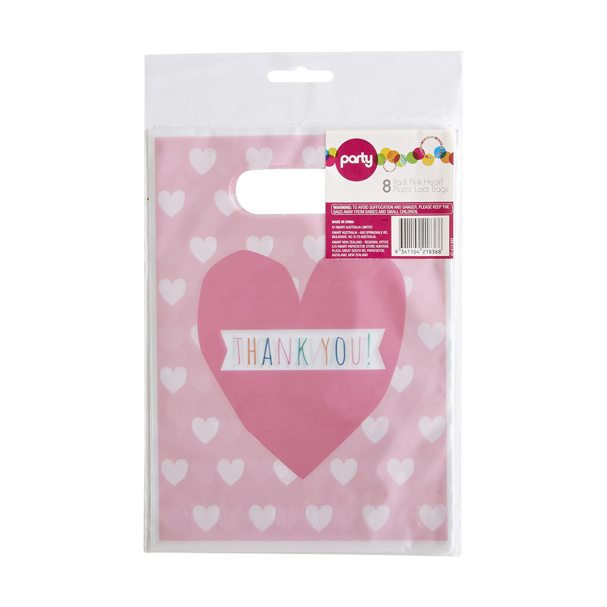 8 Pack Pink Heart Plastic Loot Bags Kmart