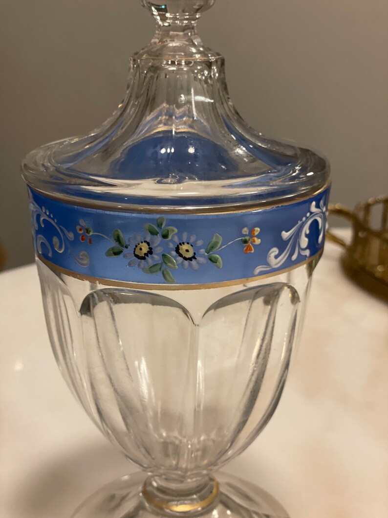 Rare Heisey Handpainted Candy Jar Circa 1930s Etsy Heisey Candy Dish With Lid heisey candy dish with lid waverly crystal etched glass seahorse handles made by heisey glass nearly 80 years ago is this. Opens in a new window or tab. vintage heisey crystolite shell candy dish with lid size: this is a vintage signed heisey wheel cut and etched designed candy dish with lid that is in elegant amber. Heisey Candy Dish With Lid.