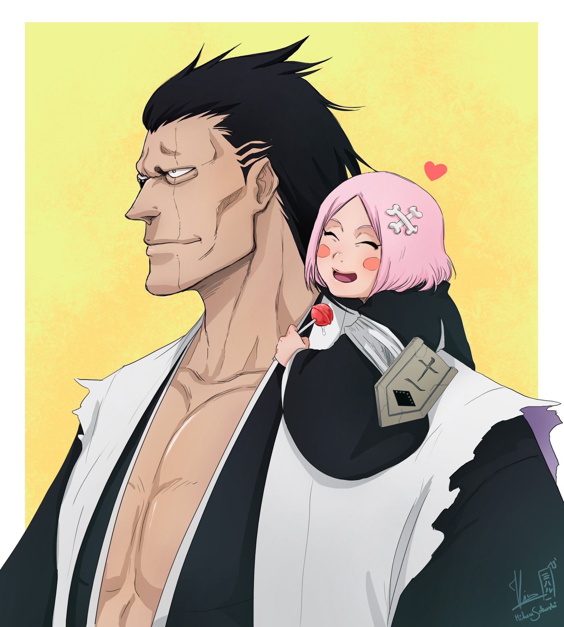 Miharu Sokushi on Twitter "New Illustration ! ♡ Daddy Kenchan gave a Bleach Kenpachi And Yachiru Yachiru is not kenpachi's zanpakuto or the spirit of his zanpakuto. Kenpachi zaraki (更木 剣八, zaraki kenpachi) is a fictional supporting character in the anime and manga series bleach created by tite kubo. Yachiru kusajishi disappeared when kenpachi was finally able to activate his bankai, which, as was later confirmed, proved that she was just a manifestation of his zanpakuto. Bleach Kenpachi And Yachiru.