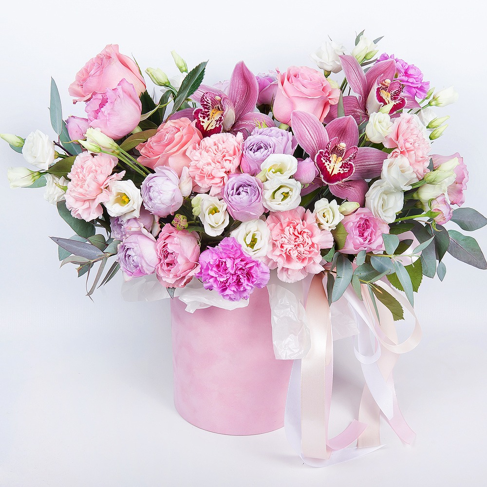Hat box with flowers 'The Princess's Dream' Order Flower Bouquets