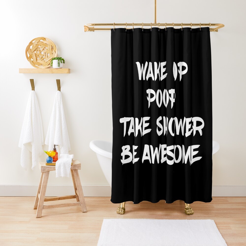 "Wake Up Poop Take Shower Be Awesome Funny Bath Mats" Shower Curtain