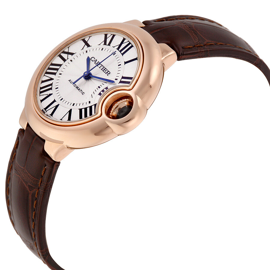 Cartier Balloon Bleu Silvered Opaline Flinque Dial Brown Leather Men's Watch W6920097 Ballon