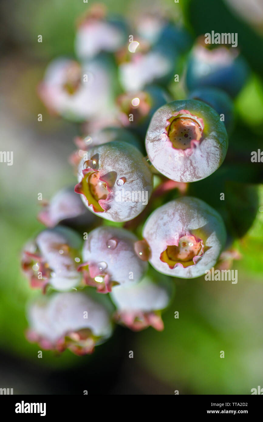 Ripening blueberries on an organic blueberry bush blueberry plant