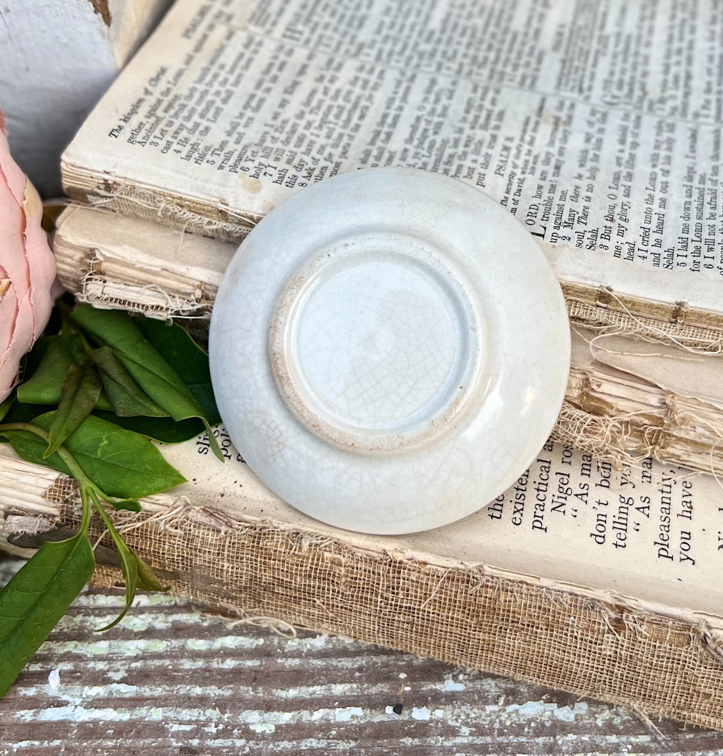 Antique White Ironstone CHUNKY Butter Pat Farmhouse Decor Thick French