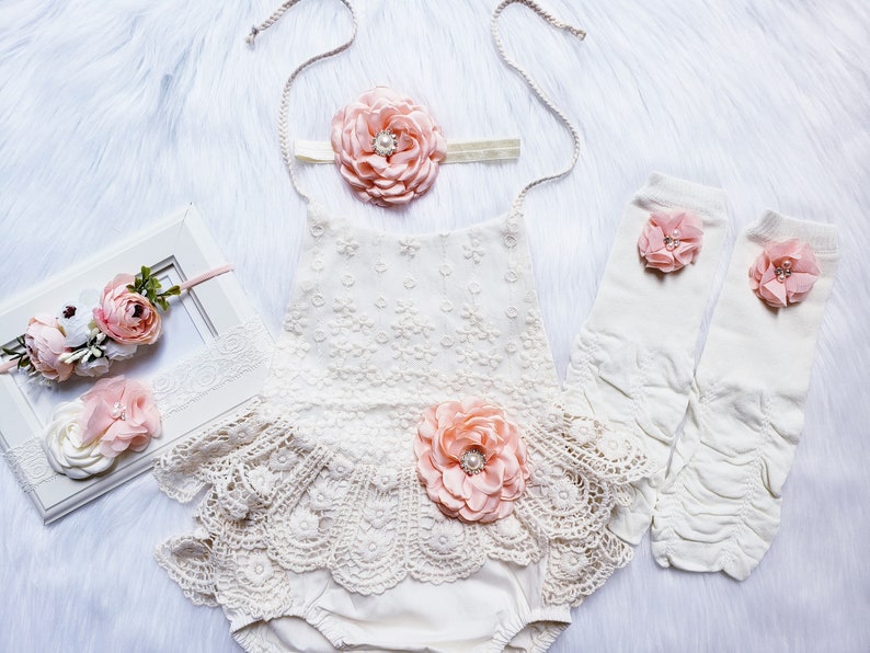 Baby girls lace romper with set of three light pink headband Etsy Baby Girl First Birthday Lace Romper Baby girls my 1st birthday outfits long sleeve floral lace romper + tutu skirt + headband set Newborn baby girl 1st birthday outfit floral lace tulle romper tutu dress cake smash princess boho clothes photo shoot The elastic waist in the back allows for easy diaper. Check out our baby girl lace romper first birthday selection for the very best. Baby Girl First Birthday Lace Romper.