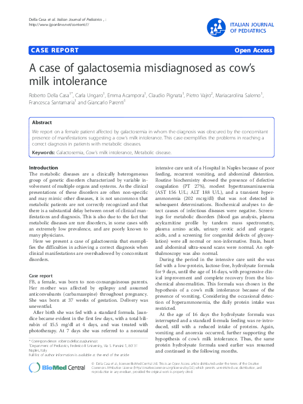 (PDF) A case of galactosemia misdiagnosed as cow’s milk intolerance Carla Ungaro Academia.edu