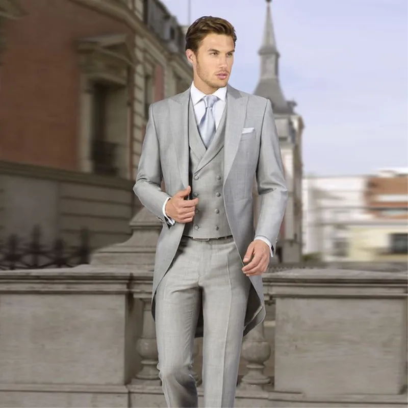 Italian Gray Tailcoat Wedding Suits for Men Retro Groom Tuxedo Slim Fit