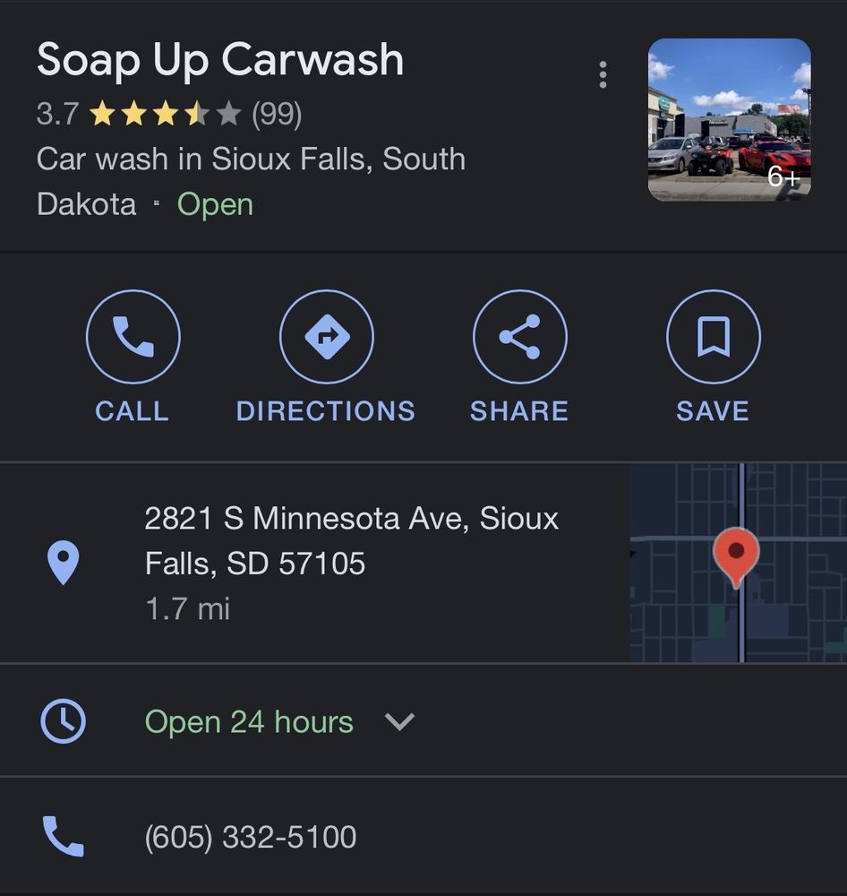 3.6 miles away from soap's up car wash star windshield repair is sioux fall's only choice for any windshield. Soap up carwash is a car wash service located in sioux falls, sd at 2821 s minnesota ave, sioux falls, sd 57105, usa providing car wash. Ratings & reviews, phone number, website, address & opening hours. See 3 photos and 5 tips from 85 visitors to soap's up car wash. Read 131 customer reviews of soap up carwash, one of the best car wash businesses at 2821 s minnesota ave, sioux falls, sd 57105 united. Soap up carwash details with ⭐ 57 reviews, 📞 phone number, 📅 work hours, 📍 location on map. Find similar vehicle services in sioux. The only car wash in town where the soap actually removes road grime.
