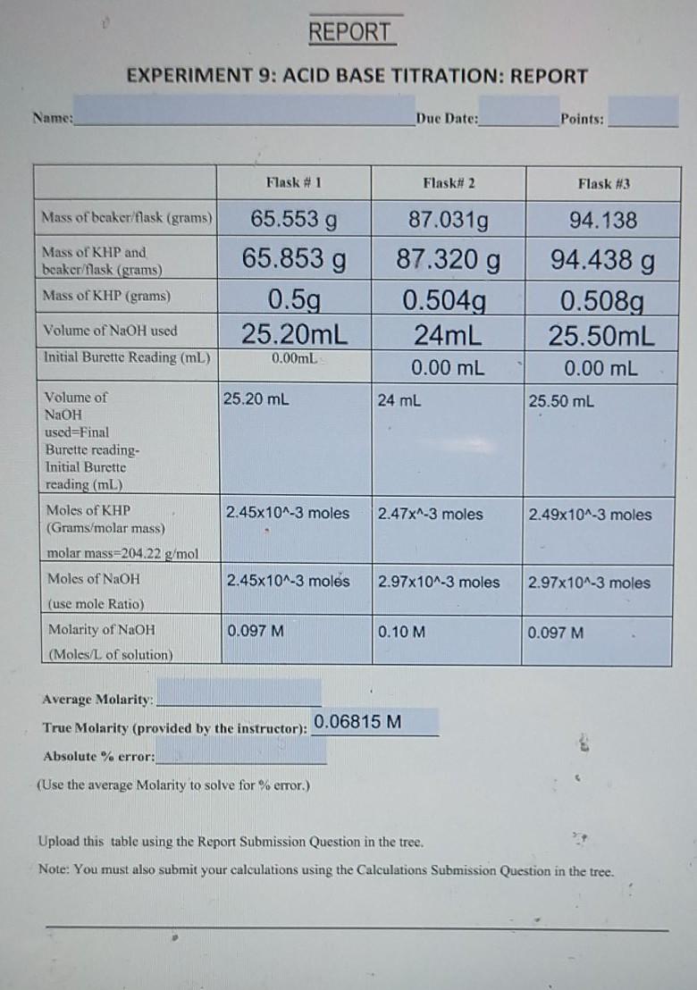 Solved REPORT EXPERIMENT 9 ACID BASE TITRATION REPORT