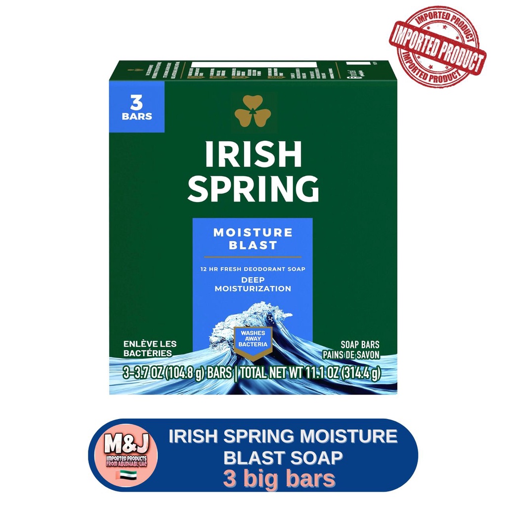 IRISH SPRING, Original Clean Moisture Blast Deodorant Soap, 3 Big Bars
