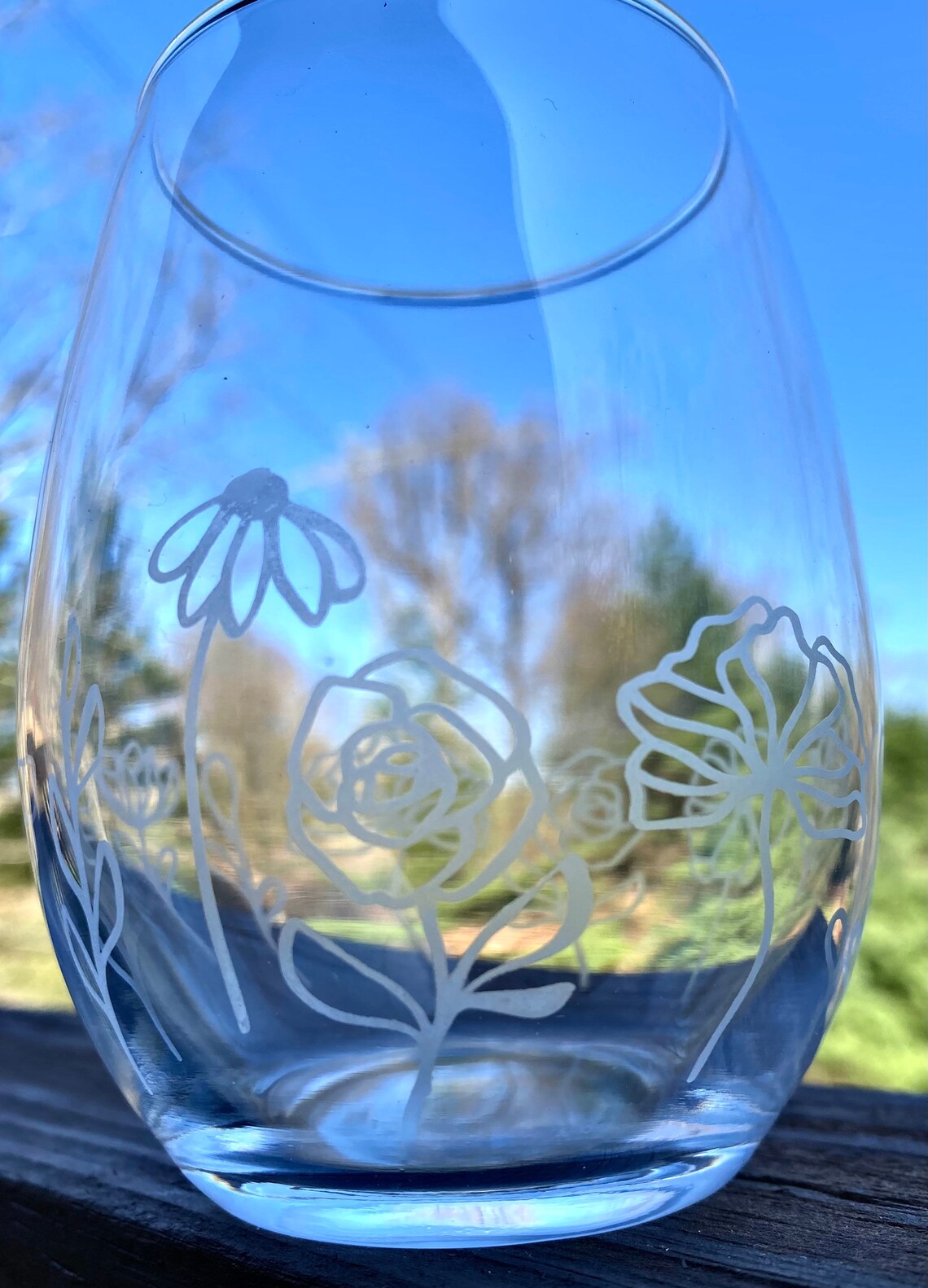 Floral Etched Glasses Wine Beer Whiskey Etsy