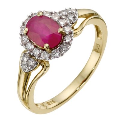 9ct Yellow Gold Diamond & Treated Ruby Ring H. Samuel the Jeweller
