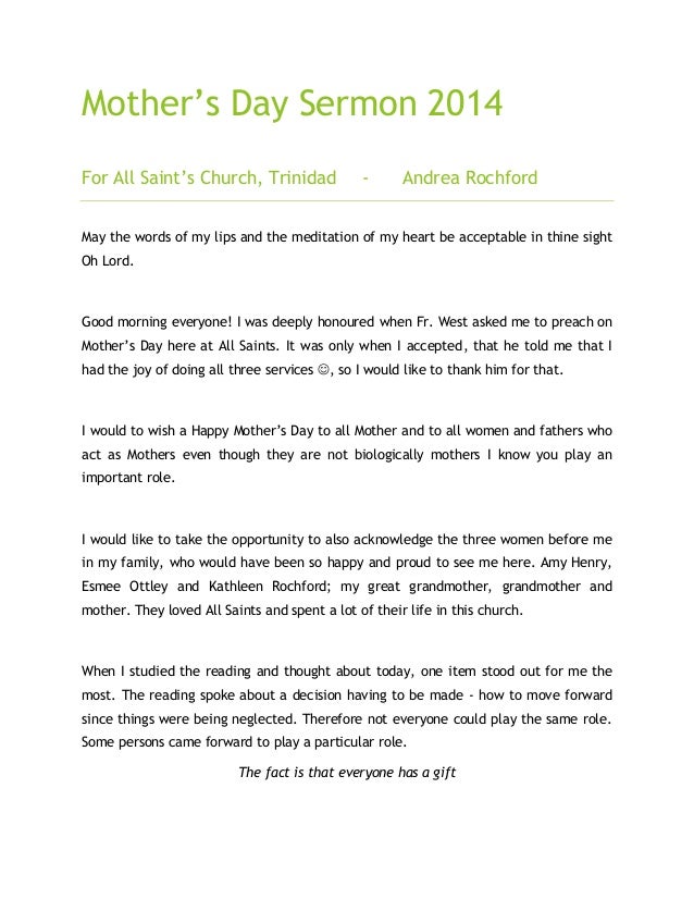Mother's day sermon 2014 All Saints final Ideas For Mother's Day Sermons All time best mother’s day sermon illustrations. Mother’s day sermons and sermon illustrations. Here are 20 mother’s day sermon topic ideas for you preach and share with your teaching team. Find fresh ideas to ignite your mother’s day sermon prep. These 5 mother’s day sermons will ignite your creativity as you work on your sermon for mother’s day. Mother’s day. Ideas For Mother's Day Sermons.