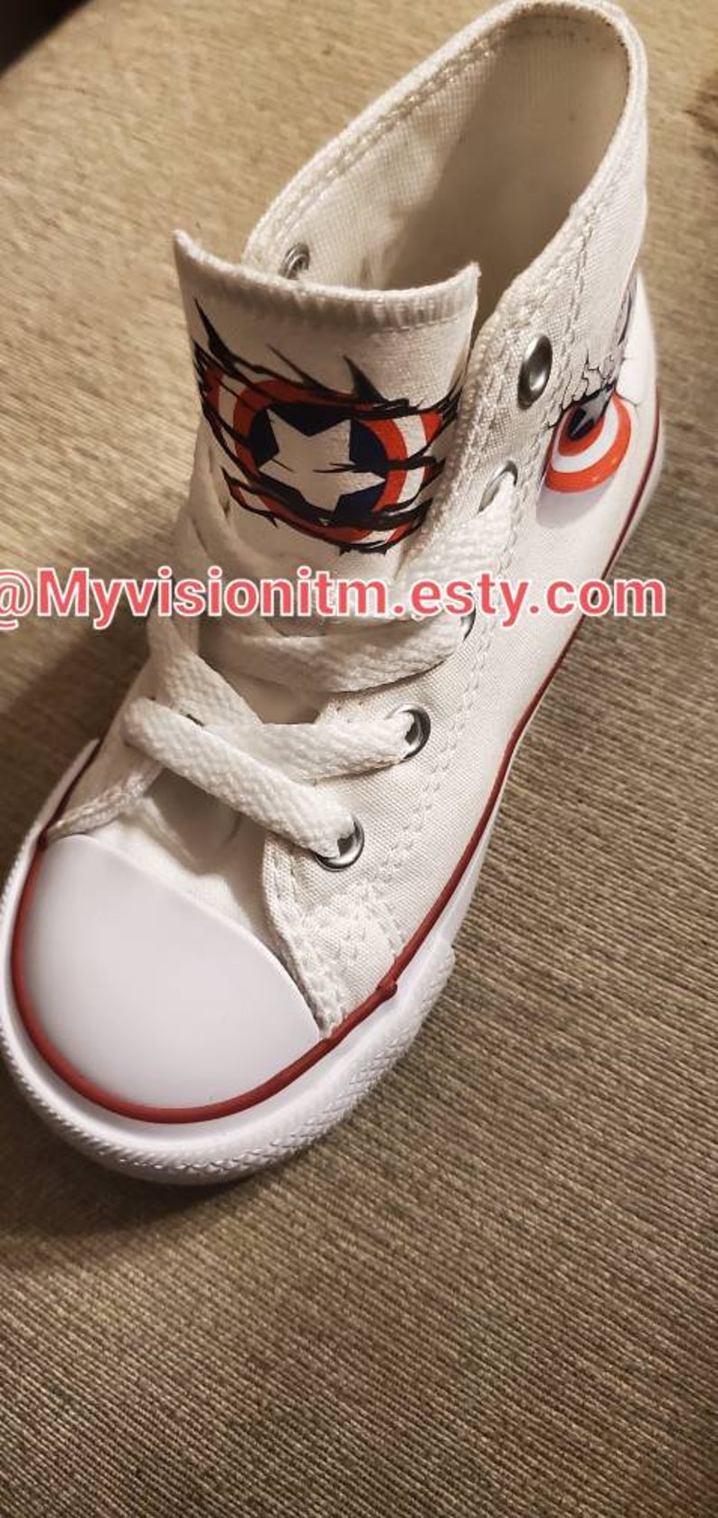 Captain America White High Top Kids Converse Etsy
