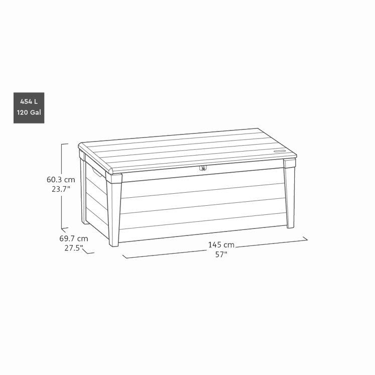 Dextrus 120 Gallon Outdoor Deck Box, Lockable Storage for Gardening Keter Deck Box 120 Gallon Brown Weather resistant outdoor patio storage deck box; This brown storage deck box features 120 gallons of storage capacity and has a beautiful wood look. Spacious outdoor bench provides storage and protection for large cushions, garden equipment, and pool supplies. Keter brushwood 120 gallon outdoor deck storage box, lockable patio and garden. Keter brightwood 120 gallon all weather weatherproof resin outdoor. Keter Deck Box 120 Gallon Brown.
