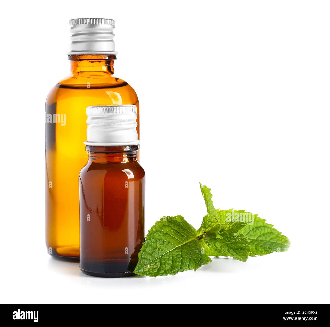 Aromatic mint oil on white background Stock Photo Alamy