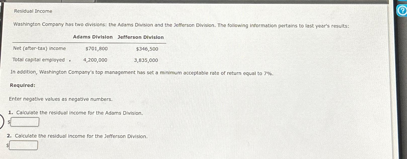 Solved Residual Company has two divisions