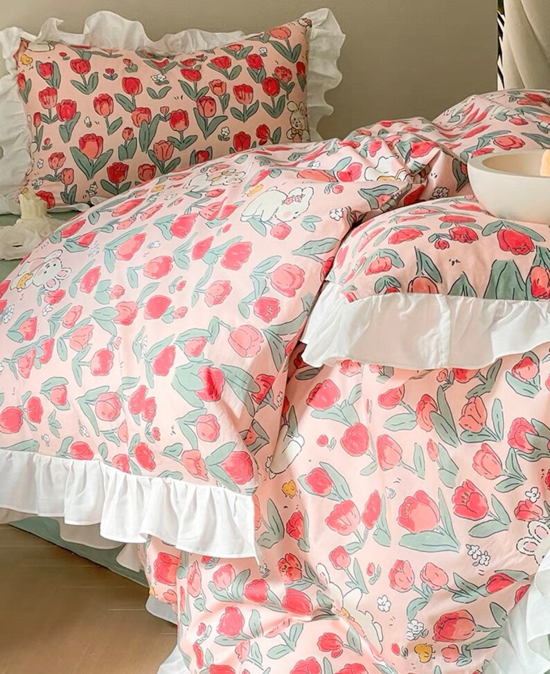 Rabbit Duvet Cover Set Ruffles French Floral Gentle Bedding Etsy