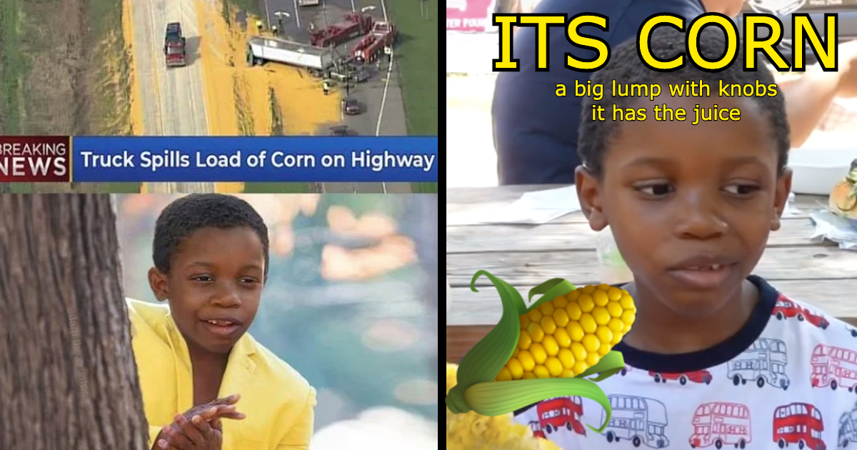 'IT'S CORN! A big lump with knobs' Wholesome Kid a Meme For
