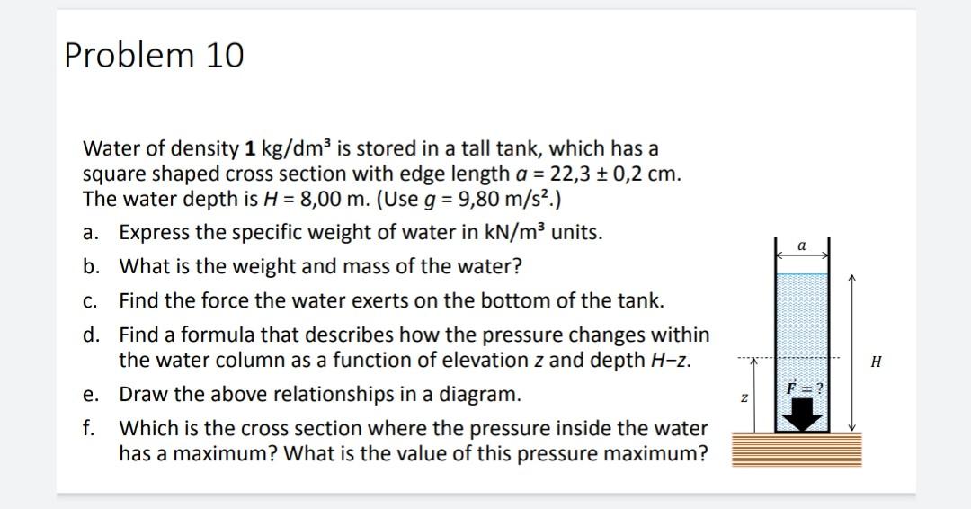 Solved Problem 10 a Water of density 1 kg/dm3 is stored in a